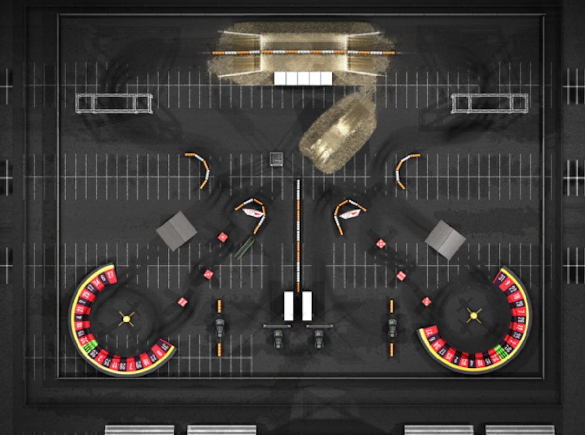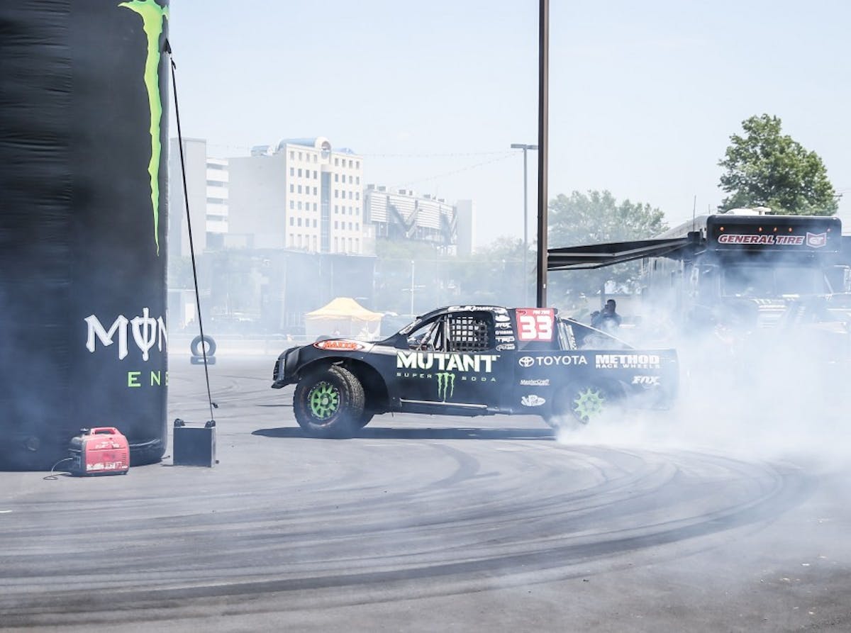This custom course took drivers out of their element in a stunt style off-road race. The course had jumps, 360-degree donuts, and obstacles which challenged the drivers. Monster Energy drivers Jeremy McGrath, BJ Baldwin, Rodrigo Ampudia, Johnny Greaves, CJ Greaves, Casey Currie, Brian Deegan, and Hailie Deegan would be competing as well as Rockstar Energy drivers RJ Anderson and Ryan Beat.