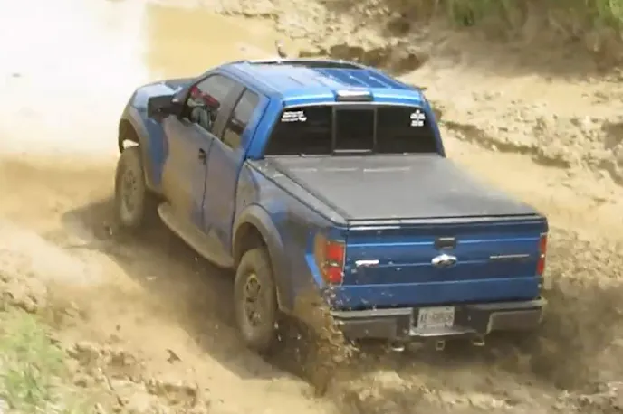 The Ford Raptor has proven that it’s capable of doing more than prerunning the deserts of Baja before the big 1000 or having fun playing in the sand. It recently proved it’s worthy as an effective mud truck. At the Silver Willow Classic Mudbog in Mansfield, Ontario something must of excited the owner of this stock Ford Raptor as he wanted to prove it can hang with the lifted mud trucks. He took his clean blue Raptor to the top of the muddy hill, dipped his way into the mud, gave her some throttle and splashed his way through the pit.