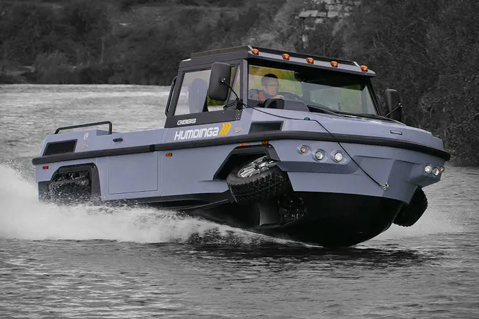 Gibbs Amphitrucks are based out of the UK, you can check out their site here and they make another larger version of the Humdinga appropriately called the Phibian, powered by 2 diesel engines it can carry up to 4,400 lbs of cargo or 15 passengers.