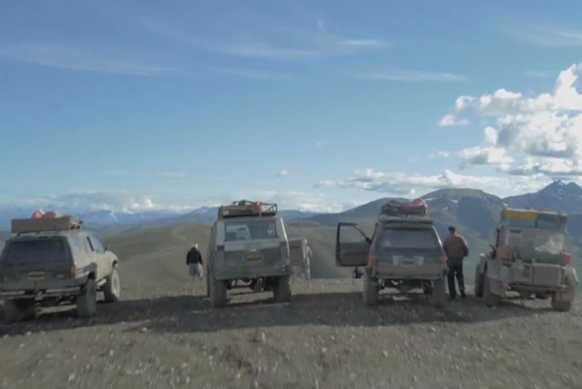We see in the video some serious 4x4s making the journey across the Frontier State. A red Toyota truck from the 1980s is seen first, hauling ass through the snow, followed by a Land Rover Discovery navigating a slushy mess.