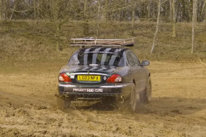 After eight weeks of tinkering, toiling, cutting, grinding, welding, and hammering, Car Throttle host Alex Kursten and his pals have created something as awesome as it is odd. They started with a regular Jaguar X-Type AWD sedan and turned it into Project Mud-Type (aka Floyd), the world’s most unlikely off-roader.