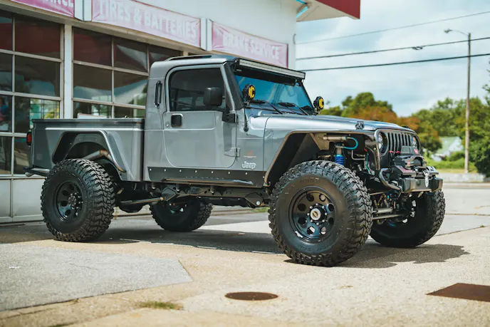 If you’ve been wanting a two-door Wrangler-based pickup truck, this is your lucky day. This incredible 2005 Jeep Wrangler with AEV Brute conversion is currently for sale on bringatrailer.com. Clearly, this is no ordinary Jeep pickup. This truck has Vortec V8 power, stout axles, and a collection of mods that make it an off-road standout. This Jeep Wrangler Brute looks pretty darn good, too.