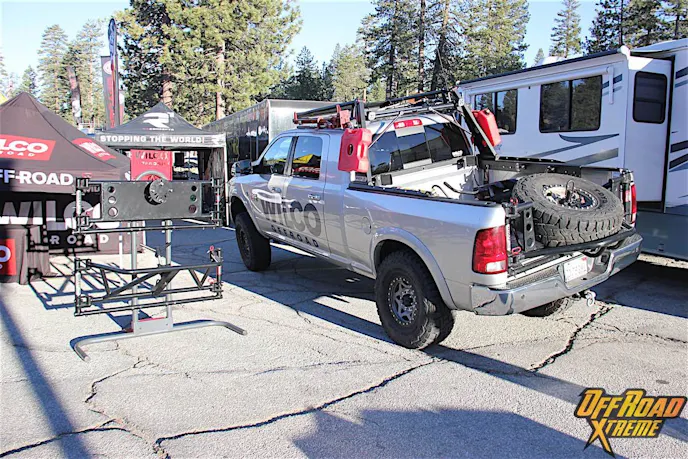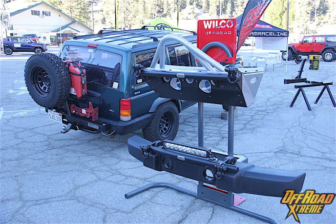 A few new products from Wilco Offroad were showcased on the silver Unlimited we were riding in. “The whole front end, front bumper, the whole kit is ours,” said Paul. “The back has our single motion tire carrier, which links into the back door. This brings it all out in one motion rather than having to open the tire carrier and then open the door to get to the inside.”