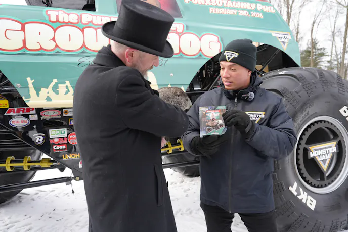 Monster Jam driver Joe Dennis participated in meet-and-greets alongside members of the Punxsutawney Groundhog Club, bridging the gap between motorsports fandom and Groundhog Day traditionalists in a way that felt celebratory rather than forced.