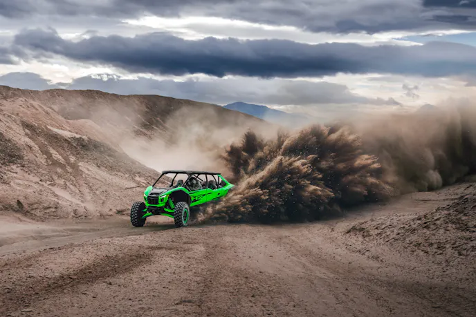 Each model features signature Kawasaki design cues: aggressive LED headlights, 27-element accent lights, painted bodywork, and Lime Green suspension arms. The dual-exit exhaust system makes a visual statement—and a sound one too. Between the high-rev howl of the inline four and the signature supercharger chirp, the Teryx4/5 H2 sounds as radical as it looks.