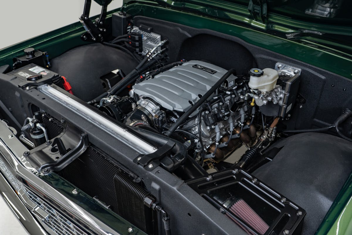 From the factory, the largest engine option for the K5 Blazer was the 350 V-8 with the 250 inline six-cylinder as the standard. For the Signature Series K5 Blazer, Velocity calls on the Chevrolet Gen V LT1, a 6.2-liter engine modestly rated at 460 horsepower. With more than twice the gears GM ever offered, a 10-speed 10L80 transmission will do all the work shifting for the driver. Engine speed stays low and quiet when you’re driving from the Cass Corridor up the Lodge to the Pancake House. When you’re ready to play the Michigan state anthem, press the loud pedal and sing the song of internal combustion burning fuel through a complete custom exhaust with Magnaflow mufflers.