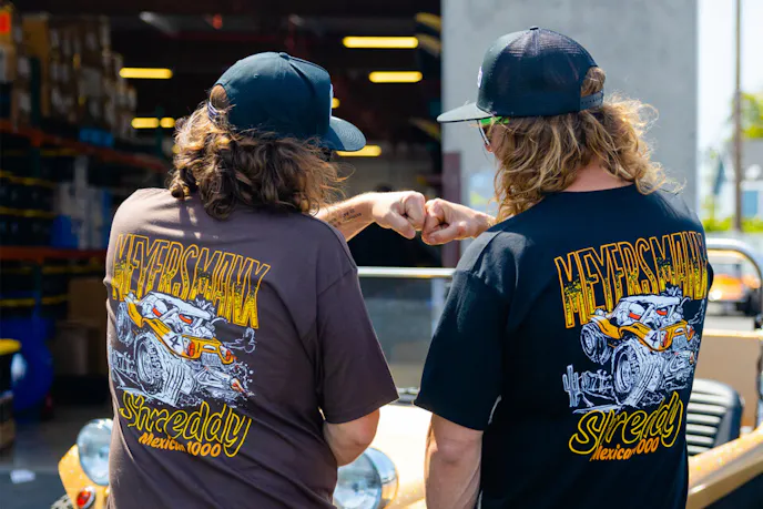 To help fund the effort and memorialize, Michael Squier, the producer of the upcoming Baja Bug film, collaborated with Blake Wilkey and Meyers Manx to produce an exclusive t-shirt fundraiser. The shirt features a throwback off-road illustration designed by Brian Kesling and commemorates the Meyers Manx Shreddy collab. It is only available on MeyersManx.com