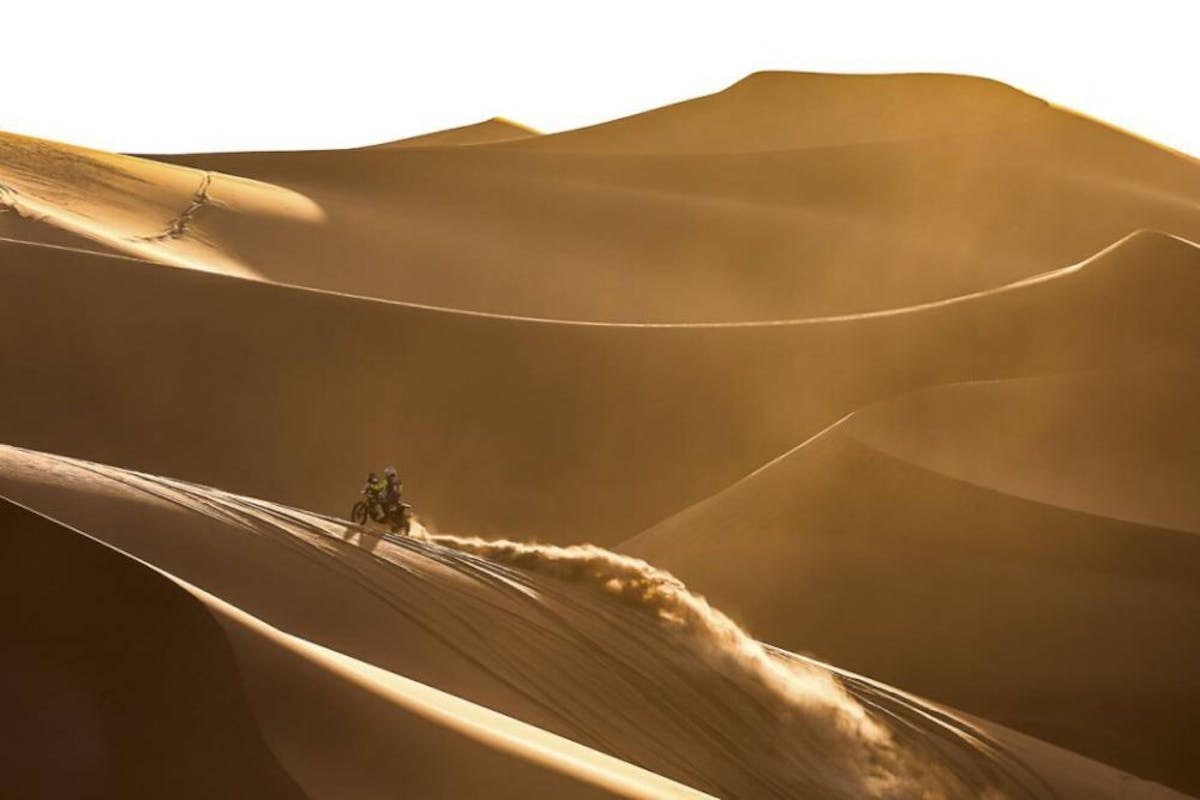 It wasn’t long before the harsh stage started to claim victims, Skylar Howes was one of those. Unable to repair his bike after a breakdown, Howes was forced to retire, and his bike was air-lifted out of the dunes. Another challenge for the day was fuel. Several riders ran out with the soft sand driving up consumption and everyone trying to push hard against the clock.