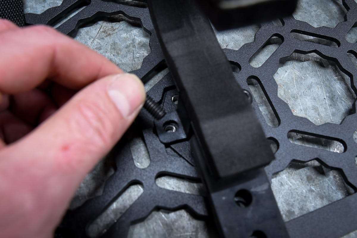 With the two panels on the table, we began planning what would go where. This process took way longer than the actual installation. We would lay it out, and after some discussion, we would think of a better layout. We added the grid inserts once we were finally happy with the position. Choosing various inserts for the panel allows you to alter the configuration swiftly to suit your current adventure.