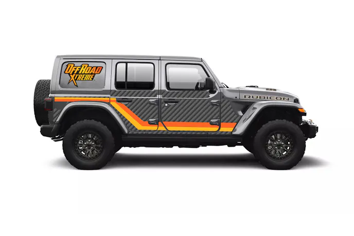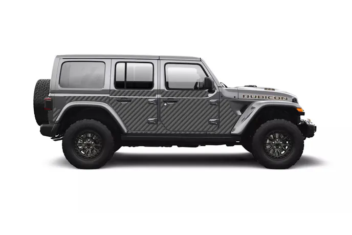The original product was made of flexible rubberized magnet material. They have kits for several different vehicles but are mostly intended for JL, JLU, JT, JK, JKU, and TJ Jeeps. For the aluminum-bodied JL and JT, they came up with a very high-tech ballistic resin that uses a custom gel membrane to stick to the vehicle. MEK has a collection of designs to choose from or you can customize your own look.