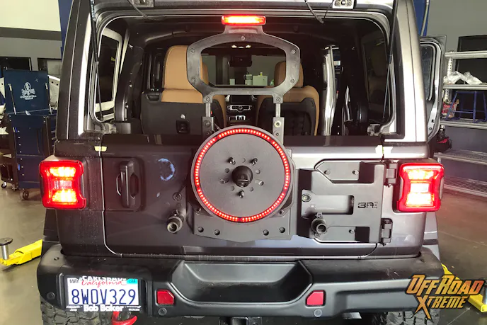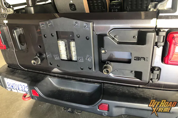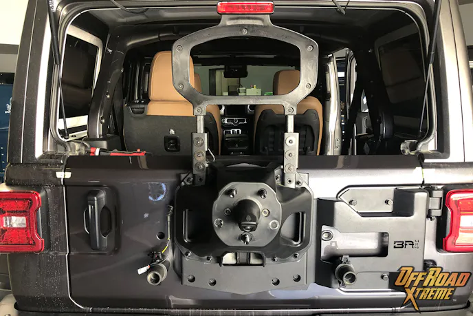To carry our full-size 37-inch spare tire, we reserved the tailgate-mounted package but bolstered it with Body Armor 4×4’s RTC Reinforced Tire Carrier (PN: JL-5290). They also offer a traditional swing gate bumper-mounted tire carrier that accommodates up to a 40-inch tire. The RTC version simplifies our lives by mounting onto the Jeep’s tailgate and requires no additional steps for rear hatch access. This is a no-drill installation, constructed of strong cast aluminum, and adds structural rigidity to help carry the load.
