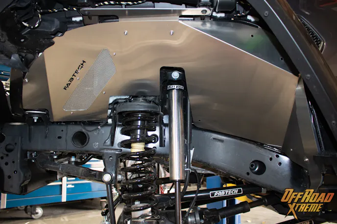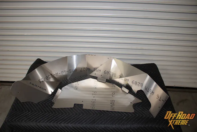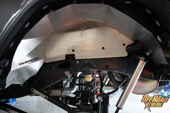 We prescribed the ORXtreme JL to run 37-inch tires. However, the installed Fabtech Motorsports 3-inch Long Arm Crawler System specifies only up to 35-inch tires. We did the math and research and were comfortable with stuffing the larger than recommended tire on our JL, but wanted to add some extra insurance. Fabtech Motorsports Inner Fender Liners seemed like just the ticket.