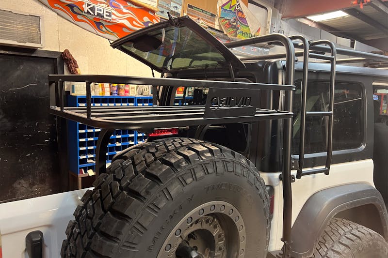 Adding the Garvin Adventure Rack Ladder makes accessing rooftop gear much easier—a crucial feature when you’re in a hurry to bug out. Garvin offers the ladder rack in both driver-side and passenger-side orientations. The Rack Ladder is manufactured from 1-inch-diameter steel tubing and bolts directly to the JL Adventure Rack. It fits both two-door and four-door JLs with Garvin’s Adventure Rack or Half Rack installed. We installed a ladder on each side of our JL.