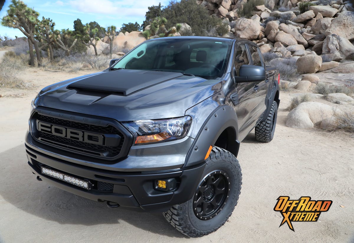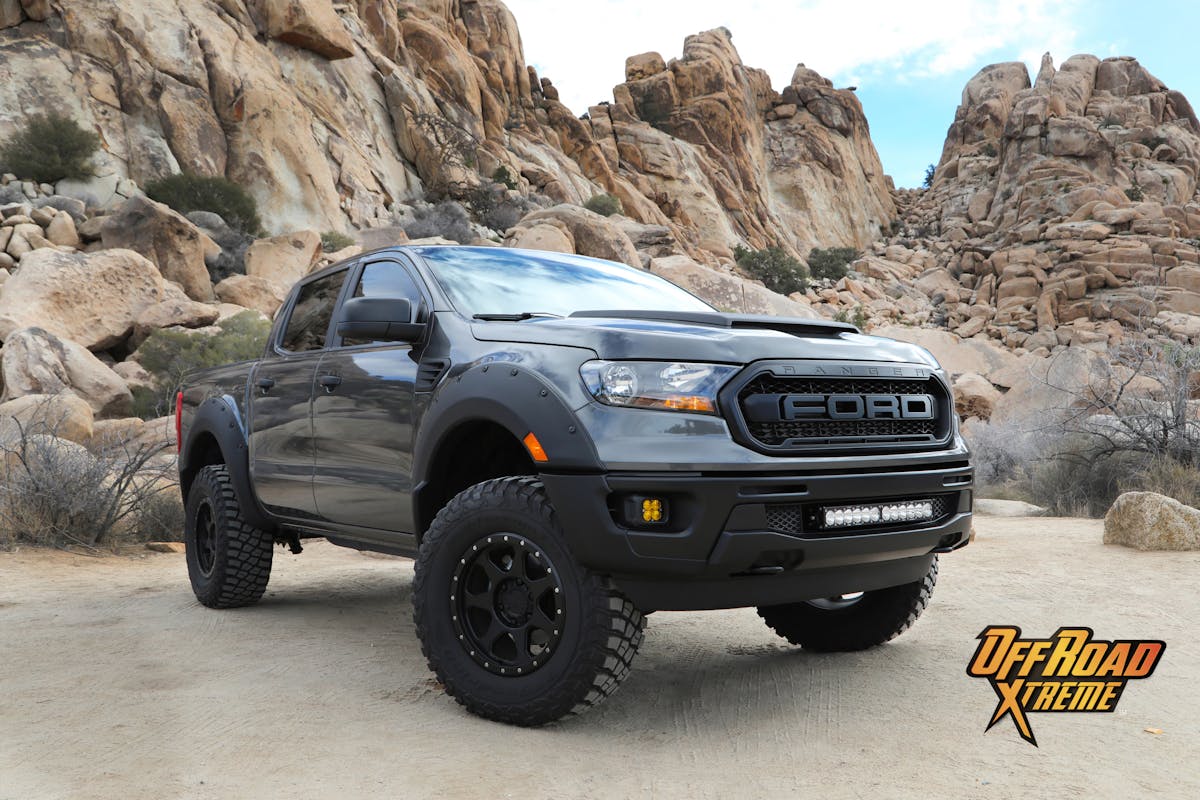 The AirDesign fender flares and body panels add trail protection as well as an aggressive appearance to this 2020 Ford Ranger.