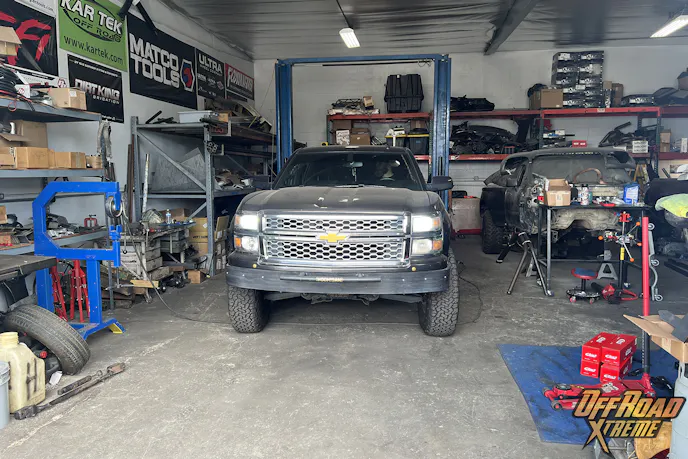 We recently got to tag along with what was supposed to be a simple spindle upgrade. The subject vehicle was a mildly built 2014 Chevrolet Silverado 1500. The truck is equipped with a Mazzulla OffRoad long-travel suspension system and single 2.5-inch King Shock coilovers. Other vehicle enhancements include a front bumper and valance, K&N Performance cold-air intake, McNeil Racing 3-inch bulge fiberglass fenders, Walker Evans Racing Wheels, 37-inch BFGoodrich ALL-TERRAIN T/A® KO2 Tires, and Texas Speed long-tube headers.