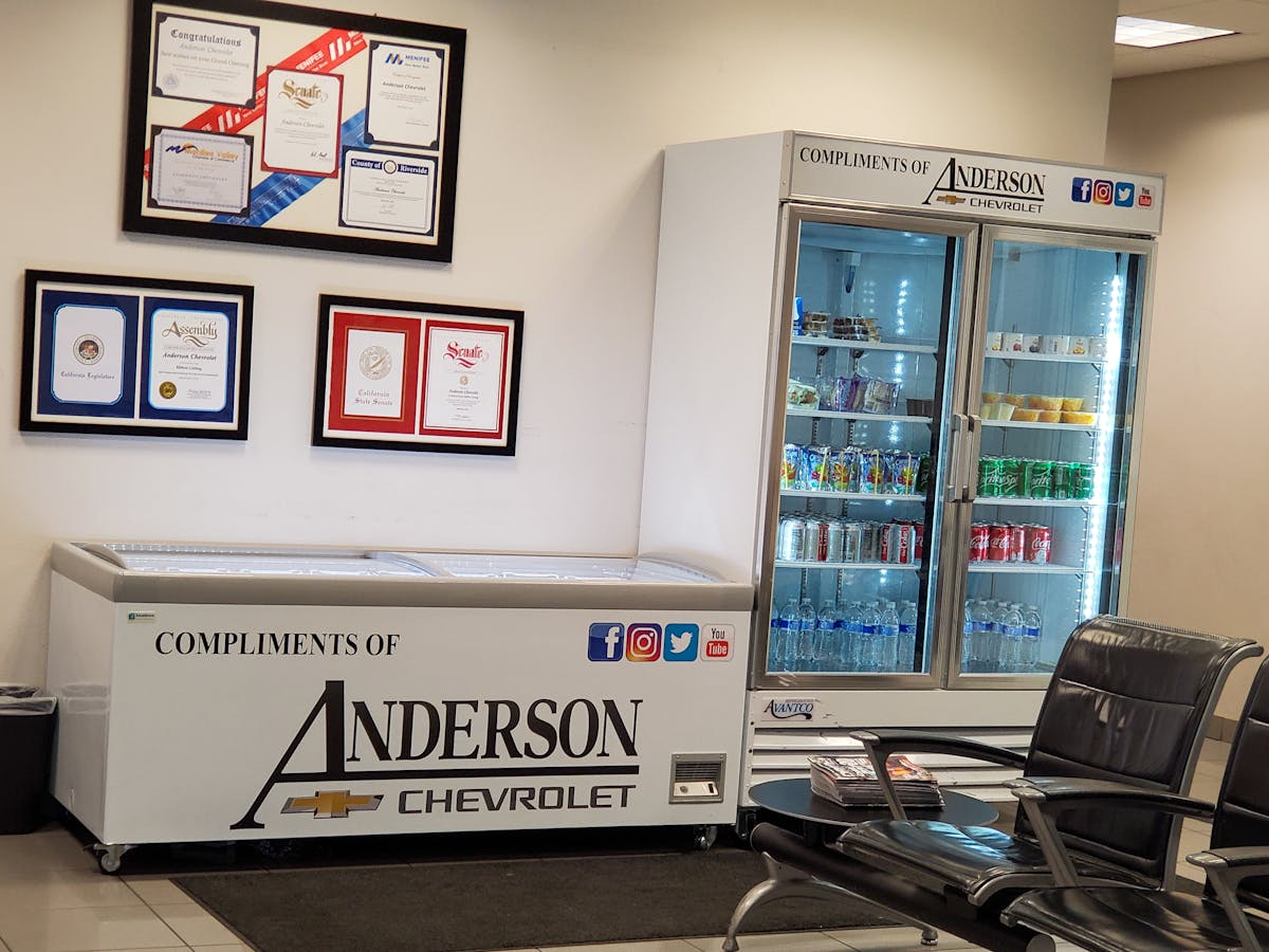 Anderson Chevrolet’s service lounge was like something we had never seen before. They had a fully stocked fridge with snacks, fresh donuts, and a coffee machine that would rival the baristas at Starbucks. It made the time spent at the dealership more enjoyable and comfortable.