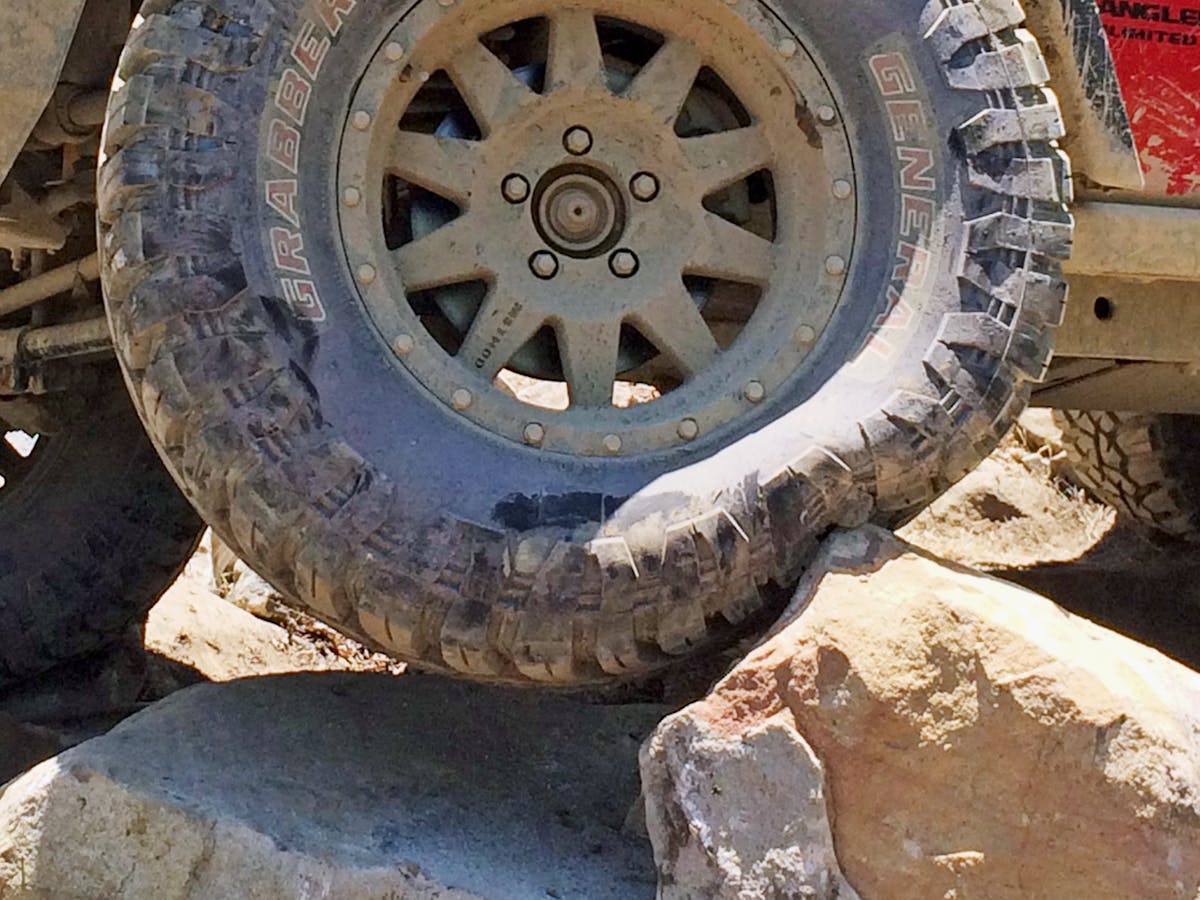 Our advice for rigs with stock wheels is to reduce tire pressure a few pounds at a time when off-road to find the sweet spot that improves performance without increasing the risk of debeading a tire.