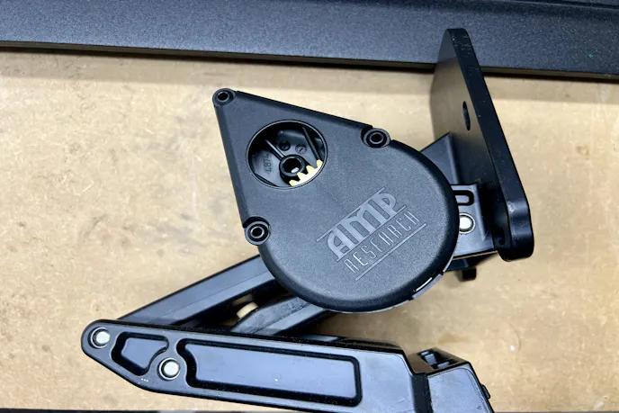 Installation of the Vison running boards is straightforward. Front and rear linkage assemblies handle the deployment and retraction of the steps. One is the motor linkage (it has the electric motor mounted to it) and the other is the idler linkage (non-motorized). One side of each linkage mounts to factory studs, so there’s no drilling. The other side of each linkage fastens to the running boards.