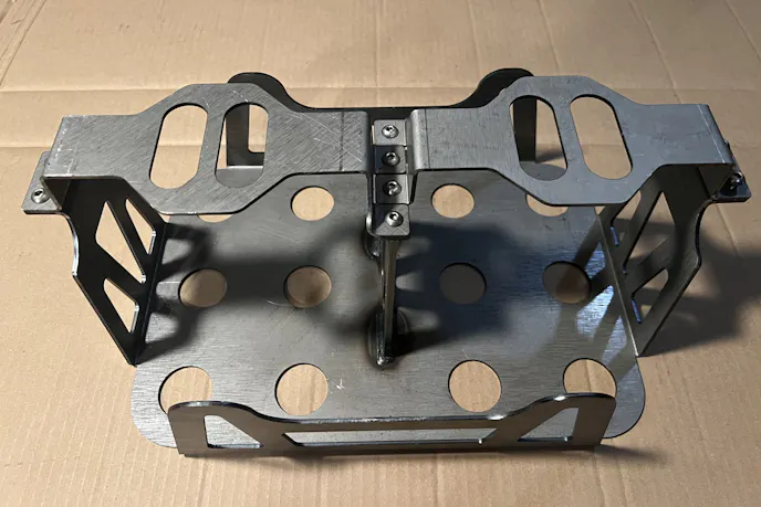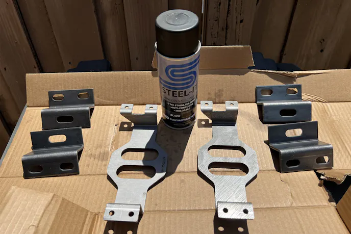Once the drilling was done, I wiped down the tray and other items with acetone and then applied a layer of black polyurethane STEEL-IT coating. This finish adds corrosion resistance and ties the look together with matte black on the rest of the build. It is functional and slick without screaming for attention.