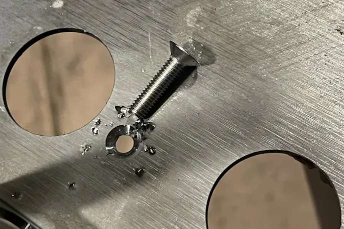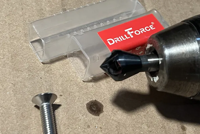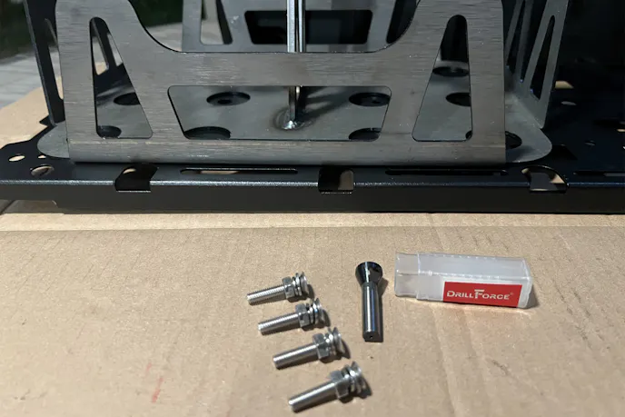 I’d ordered a 151-piece M6 stainless hardware kit consisting of countersunk bolts, washers, and nuts, plus a Cobalt M35 countersink bit for cutting perfect chamfers into the tray. I wanted the bolts to sit flush, no snags, no rattles, nothing that would inhibit the batteries from sitting flush.