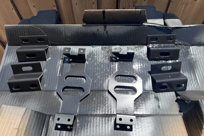 The last mystery was how to tie the Gear Plate into the Ranger’s truck bed. I went hunting for heavy-duty brackets or something that could bridge the gap between the plate and factory bed bolt points. Eventually, I found 6-piece Z-shaped corner braces on Amazon meant for industrial shelving. The reviews mentioned people using them for roof racks and other overlanding necessities, so I figured, why not? The material specs were up to snuff, and they definitely looked stout.