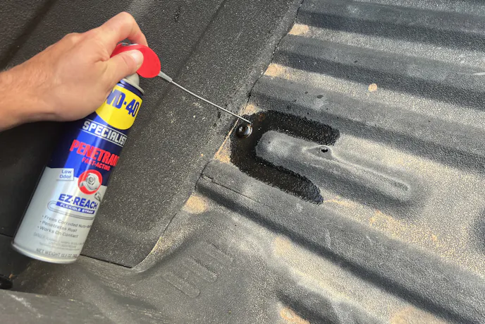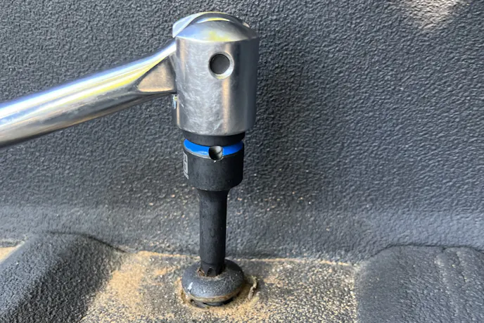 While the protective coating cured, I prepped the bed hardware. Anticipating seized bolts, I soaked every OE bed mount with WD-40 Specialist Penetrant overnight. The next morning, the old bolts broke loose with a groan and some elbow grease using a breaker bar and a Torx T55 1/2″ S2 Steel Star Socket tightened down, it looks very sturdy and purposefully assembled.