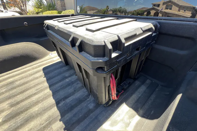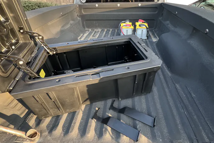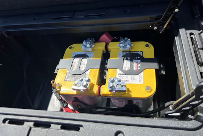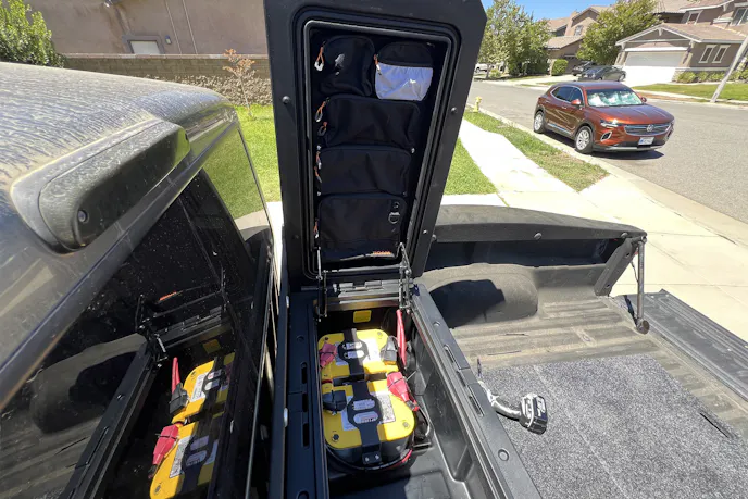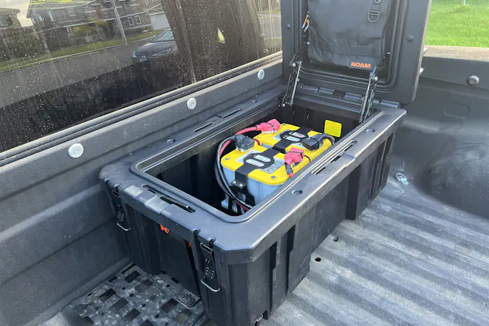 Mounting heavy batteries in the forward bed position also shifts weight closer to the center of the truck. That’s good news for handling in a truck that’s already pushing its limits when loaded for trips.