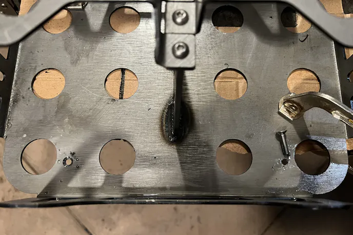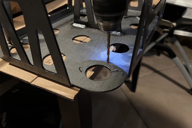 Once the drilling was done, I wiped down the tray and other items with acetone and then applied a layer of black polyurethane STEEL-IT coating. This finish adds corrosion resistance and ties the look together with matte black on the rest of the build. It is functional and slick without screaming for attention.