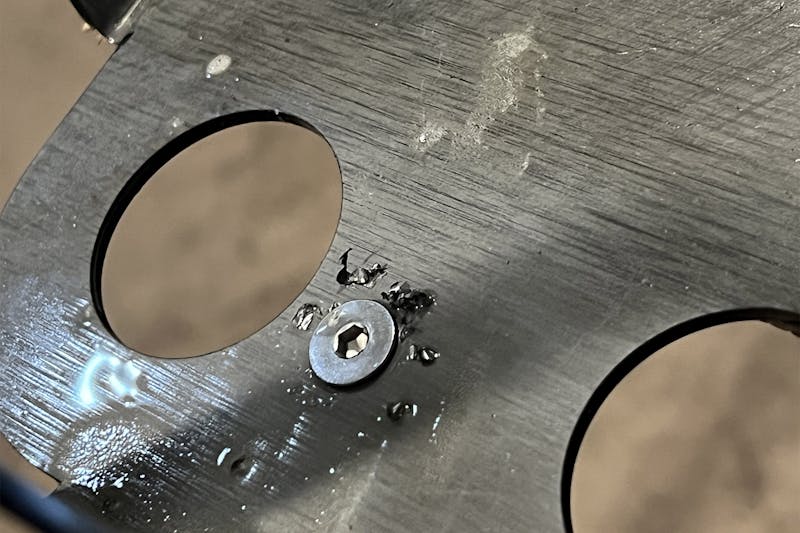 I’d ordered a 151-piece M6 stainless hardware kit consisting of countersunk bolts, washers, and nuts, plus a Cobalt M35 countersink bit for cutting perfect chamfers into the tray. I wanted the bolts to sit flush, no snags, no rattles, nothing that would inhibit the batteries from sitting flush.