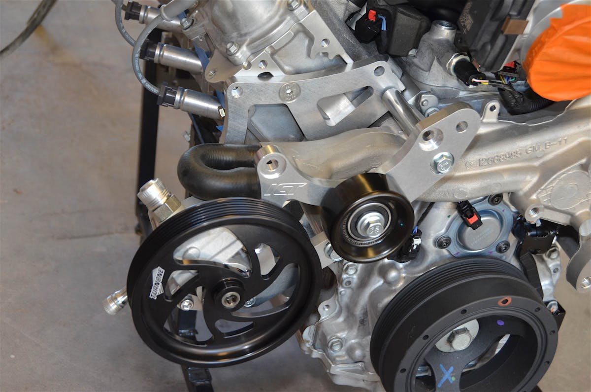 ICT Billet helped us get our power steering pump mounted to the LT376/535 with the help of its Gen V bracket kit. The kit included new mounts for a power steering pump and alternator.