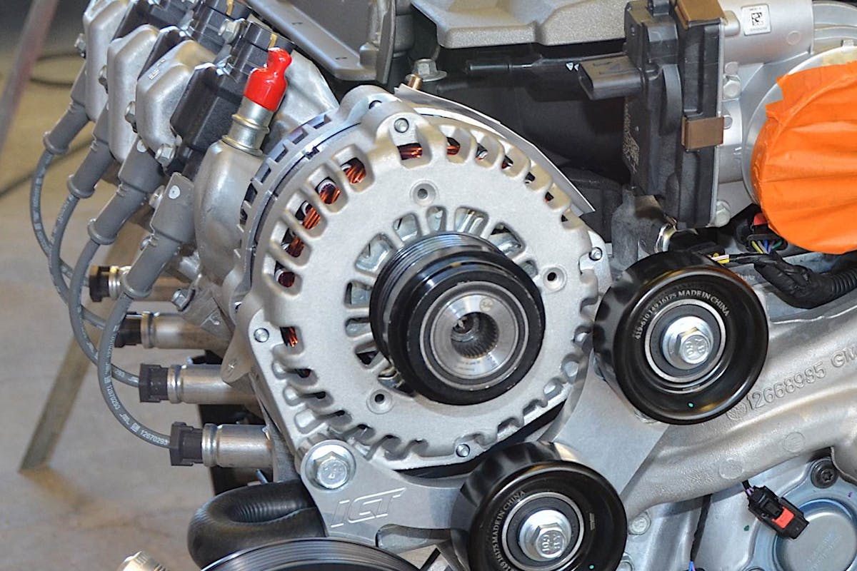 Using the kit required us to use an L83 water pump and tensioner from a 6.2-liter Silverado engine. The inlet/outlet on the factory water pump would need to be reversed in order to make sure everything fit correctly.