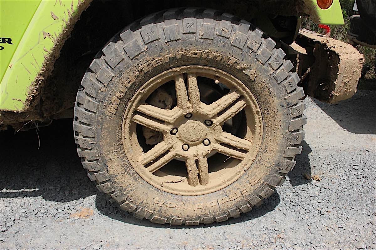 Another odd factor surrounding this experience: half of the Jeeps ran on BF Goodrich KM2s (presumably brand new), which Firestone expected us to compare with the Destination M/T2 and see that the latter was a definite improvement; more on that later.