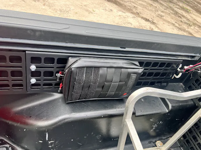 Another benefit is that the rack system makes loading and unloading quicker. No longer do we need to go through the hassle of running straps all over the place to secure or release gear. Furthermore, we like the MOLLE pouch included with the system. We mounted ours to the driver-side rack and use it to carry a first-aid kit, among other things. Additionally, we need to give kudos to the BuiltRight MOLLE nuts. They’re small, but a lifesaver. They make it easy to move mounts around once the panels are installed on the truck.