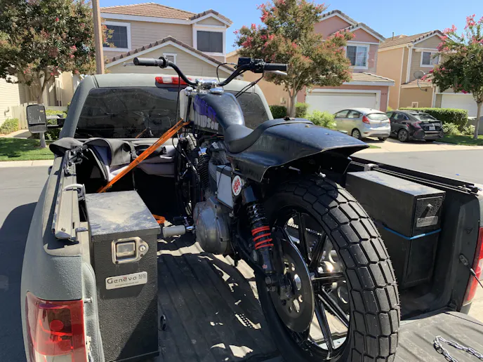 As an added value over other campers, the Supertop affords me the luxury of folding down when I need to haul something large, like my motorcycle. You can see in the pictures above, I had no problem loading up my race bike. In a matter of minutes, the Supertop went from covered-wagon to open bed.