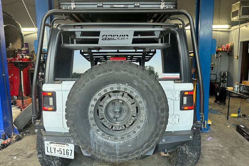 So far, the transformation has been radical. We took stock of our starting point and built an inventory plan worthy of a prepper’s dream garage. We’ve upgraded for impossible terrain, mounted a Springfield Armory loadout, and locked down critical gear with Tuffy Security Products. Most recently, the project received an assortment of body armor upgrades and then off-road lighting from Baja Designs after that. Along the way, the Jeep was fitted with 17-inch Black Rhino Abrams wheels wrapped in 35×12.50R17LT Mickey Thompson Baja Legend EXP tires.