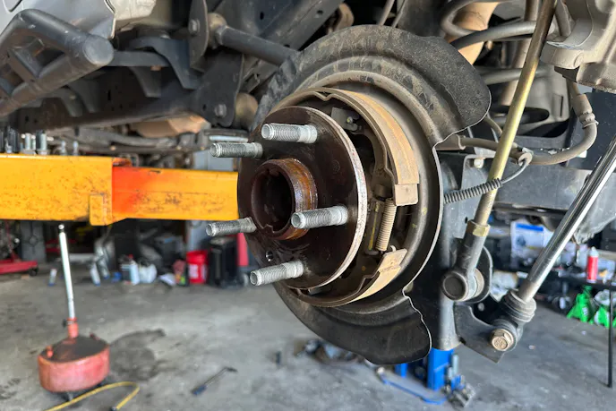 Brake calipers and rotors were removed for better access. Axle shafts were pulled, and the carrier assemblies with ring gears were carefully removed and labeled for reference.