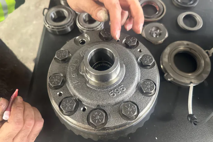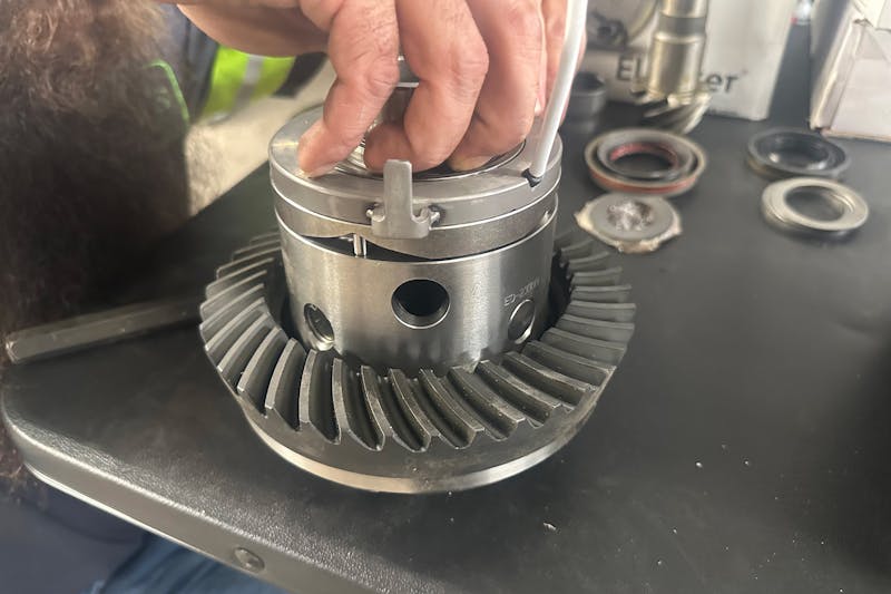 Axle shafts, brakes, and driveshafts were reinstalled. All wiring connections for the lockers were tested, ensuring both front and rear units engaged and disengaged cleanly.