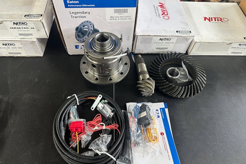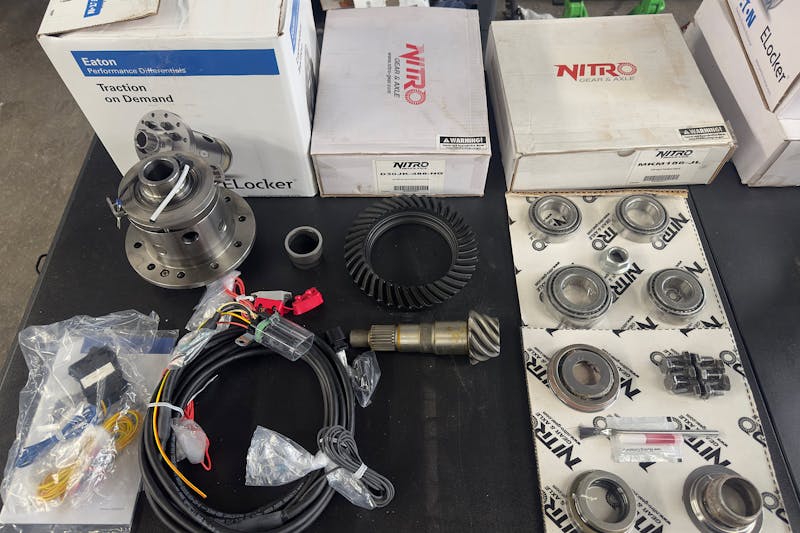 To resolve current and future issues, we turned to Nitro Gear & Axle for a complete front and rear regear and master install kits, plus their aluminum rear diff cover. We also added Eaton ELockers front and rear, giving us selectable, on-demand locking differentials to maximize traction on any terrain.