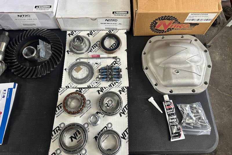 With the gears set, the rear Dana 44 M220 received its new Nitro aluminum cover. The cover’s recessed bolt design helps prevent trail damage. The material, design, and construction help dissipate heat. Each of these critical benefits helps with extended low-speed crawling, where oil temps can climb.