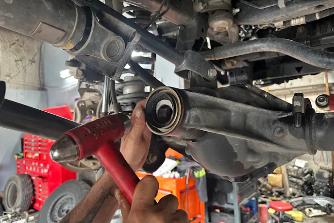 Axle shafts, brakes, and driveshafts were reinstalled. All wiring connections for the lockers were tested, ensuring both front and rear units engaged and disengaged cleanly.