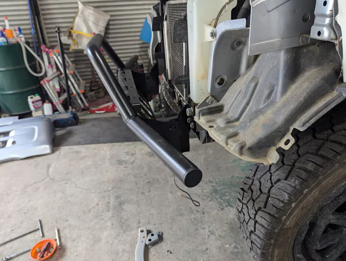 While the Japanese manufacturer does not offer much else for Daihatsu Deck Van owners, it does make a solid bolt-in brush guard for this older generation, with OVERTECH’s Type 1 Brush Guard being the most rugged. Each unit comes with everything needed for an install, including hardware, and features triangulated bash plates on each side, as well as a centrally-mounted skid plate, a license plate mounting point, and even a top-mount fog light bracket.