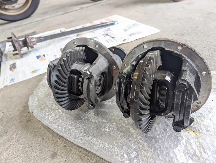 With the need for a locking rear differential being apparent since day one, I searched high and low for a reputable manufacturer that could offer an aftermarket solution. Eventually, I came across Florida-based Traction Concepts, which low and behold had been making one-off diff locks for kei trucks in America. So, with an upcoming trip to the USA already in the books I sourced a donor rear end on Yahoo Auction, removed the core differential from its housing, and boarded a plane with the hunk of steel stowed in a checked bag.