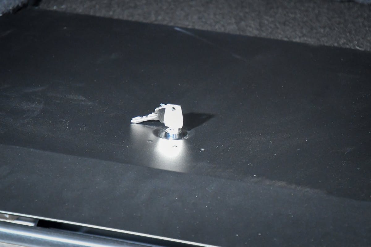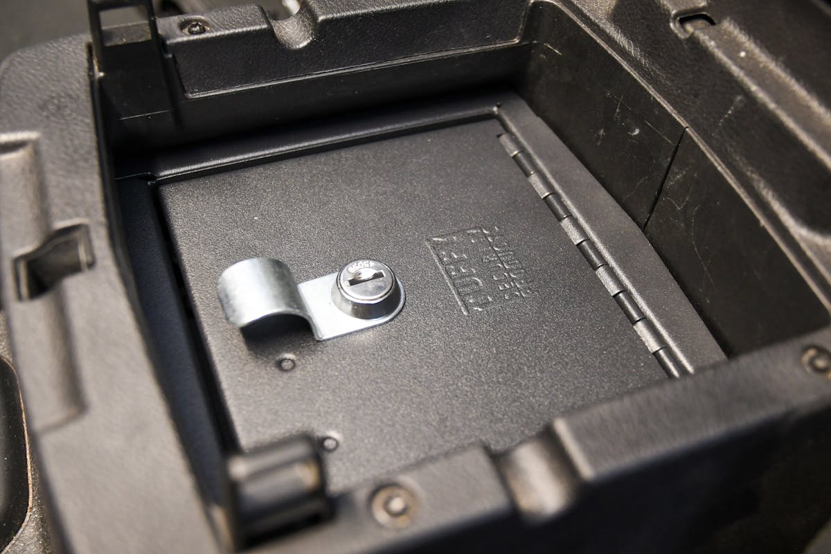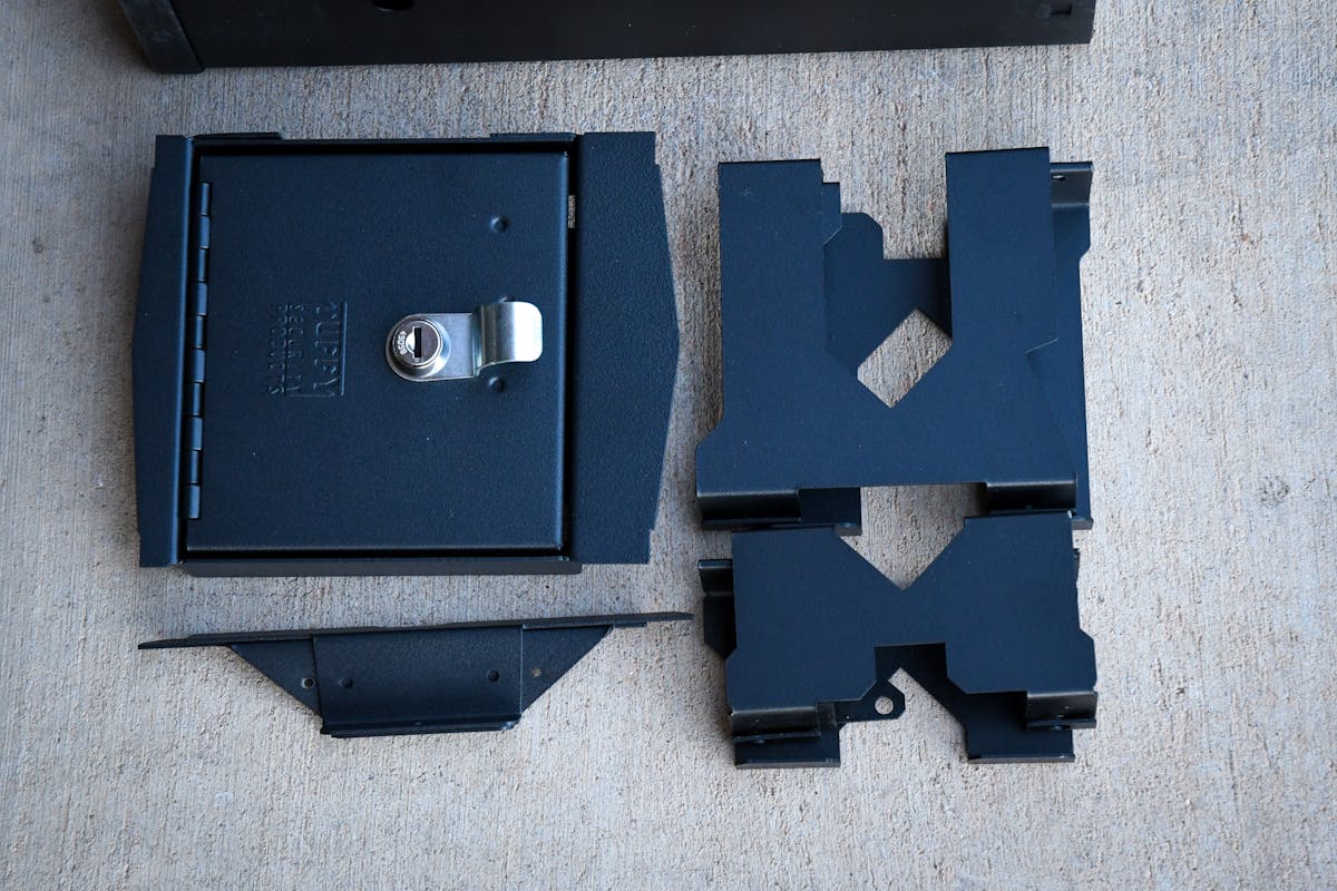 Tuffy’s console safe is robust, with 1/8-inch-thick welded components. Its welded steel construction ensures durability and reliability, while the quick and easy installation process—requiring only hand tools and no drilling—makes it a hassle-free addition to your vehicle. It’s perfect for small firearms, ammo, medicine, or anything small in size. We love the fact that there’s enough room to utilize the space above the console safe as well, covering the safe at first glance.