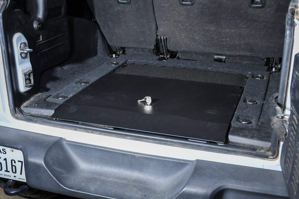 After installing the console safe, we turned our attention to the Jeep’s rear. Tuffy’s heavy-duty locking in-floor lid was the perfect choice to replace the flimsy factory cover, offering peace of mind wherever your adventures take you.