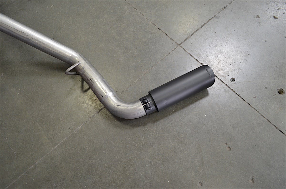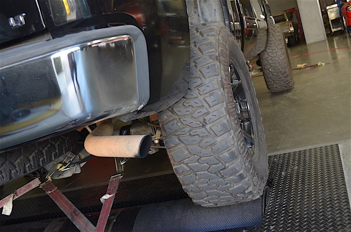To keep everything above board and emissions-legal, a system behind the catalytic converter (known as a Cat-Back) was chosen. To ensure longevity, we wanted a stainless steel system, and since Project Murderado is all about making a statement, we also wanted an aggressive exhaust tone. Flowmaster had just the right kit for our needs with a dual tailpipe Cat-Back system made from three-inch diameter 409S stainless steel with dual four-inch black ceramic tips (PN 817688). Specifically designed for crew and double cab installations, the kit comes backed with Flowmaster’s Lifetime Warranty.