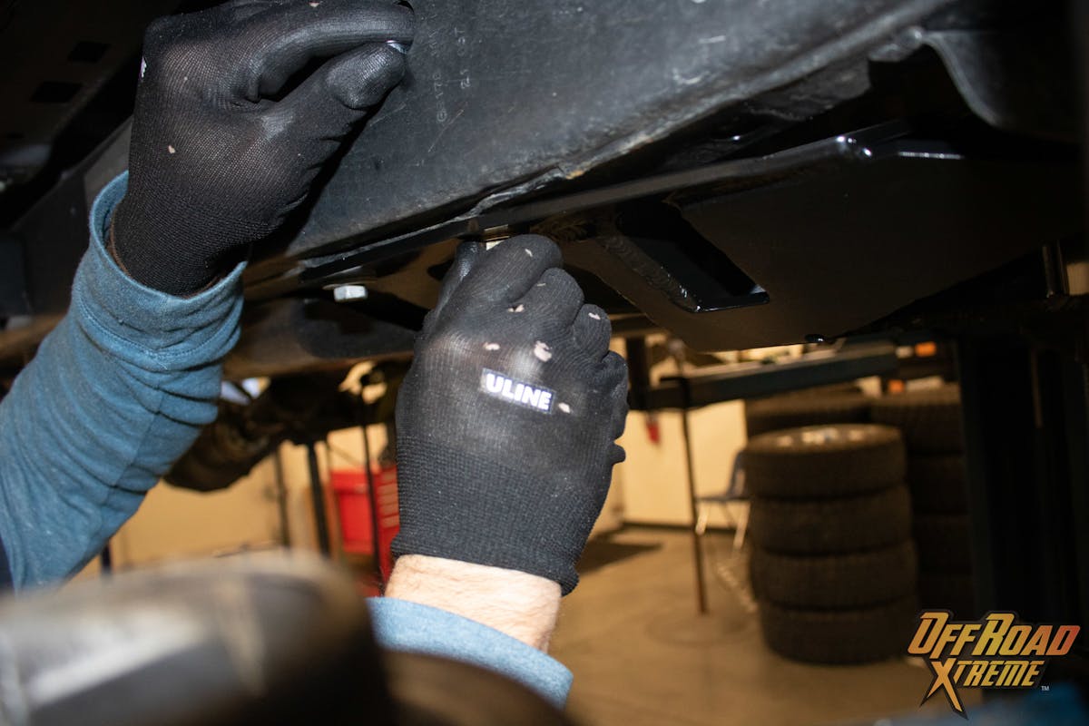 At this stage, things will start to move a lot more quickly now that the meticulous fabrication is out of the way. Starting with the Fabtech Crawler System subframe, we started actually installing the kit components. It is a heavy-duty unit that should be supported in place, or have a buddy hold it up while it is bolted in. Some drilling is required that will allow for the appropriate hardware to securely mount the subframe to the vehicle’s frame.