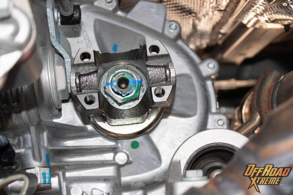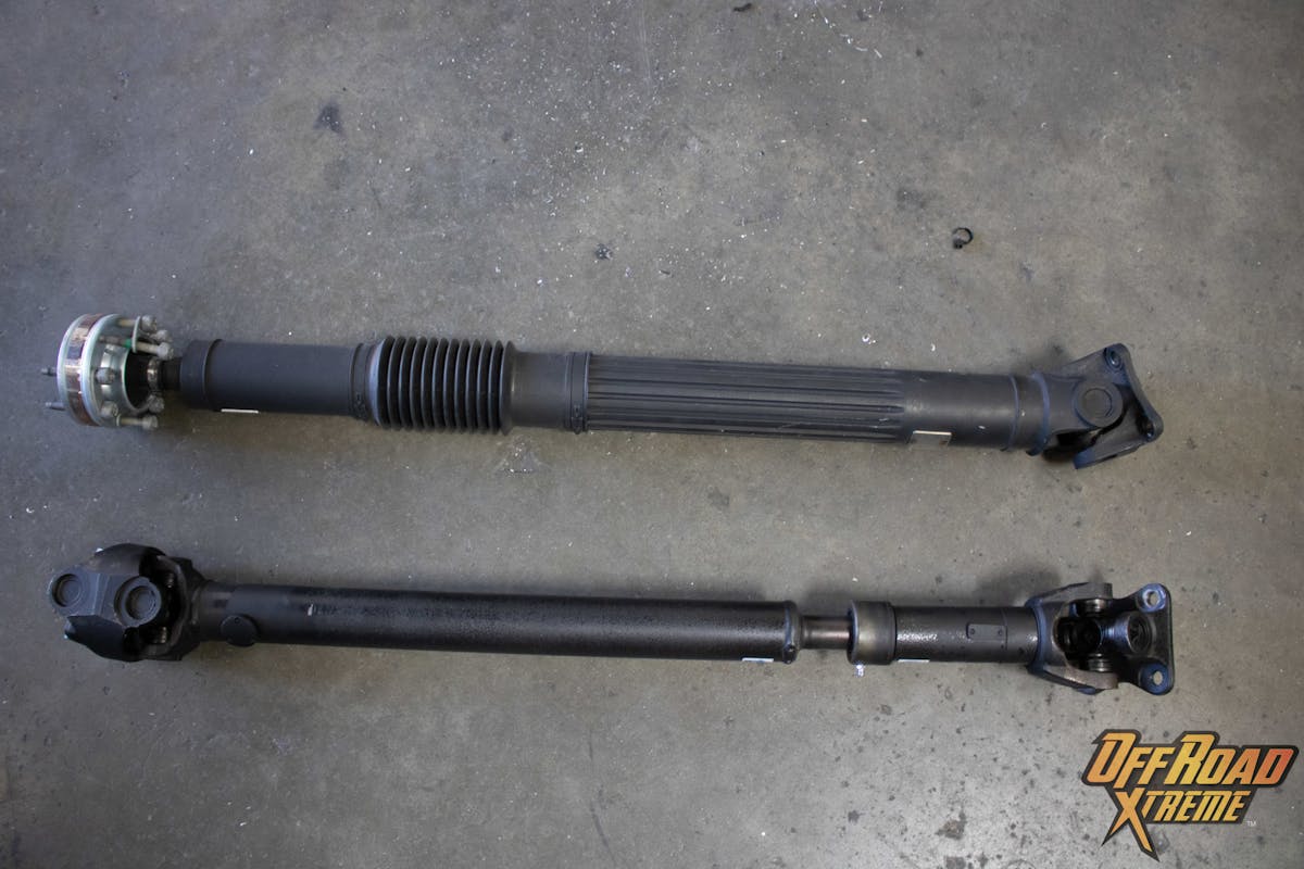 Starting with the brake lines, electrical sensors, and on our Rubicon, the electronic locking differential plug was all removed from the axle housing and cleared out of the way. We disconnected the swaybar links, track bar, and steering arms and then pulled the front shocks which finally allowed for the axle to be lowered. This then allowed for the coil springs to be removed.
