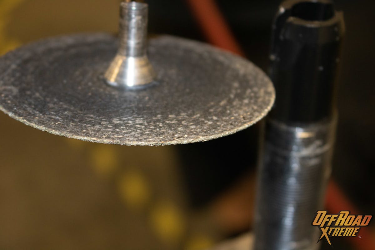 The upgraded Dirt Logic 2.25-inch shocks are a nearly bolt-on replacement for our Jeep JL, but because of the new shock’s large cap and shoulder, they require a bit of clearancing to fit. Shawn used a cutoff wheel to square off the obstructing material and we quickly had the Dirt Logics mounted into position.