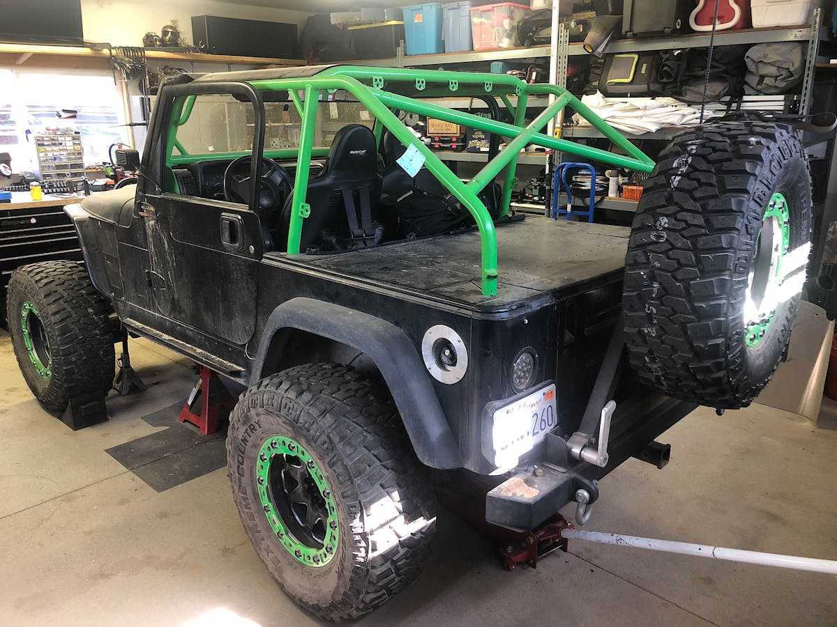 To recap on Project Redneck, it’s a 1997 Wrangler TJ with the 2.5-liter inline-four engine and a manual transmission. It started life colored in Chili Pepper Red Pearl (hence the nickname), but its owner and Off Road Xtreme’s head shop technician, Dean Jigamian, repainted it gloss black a few years ago. Since that time, it’s received beadlock wheels, Dick Cepek Extreme Country tires, Optic Armor windshield, Currie 44 front and rear axles, and a whole lot more.