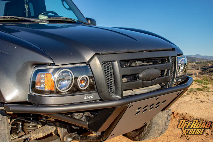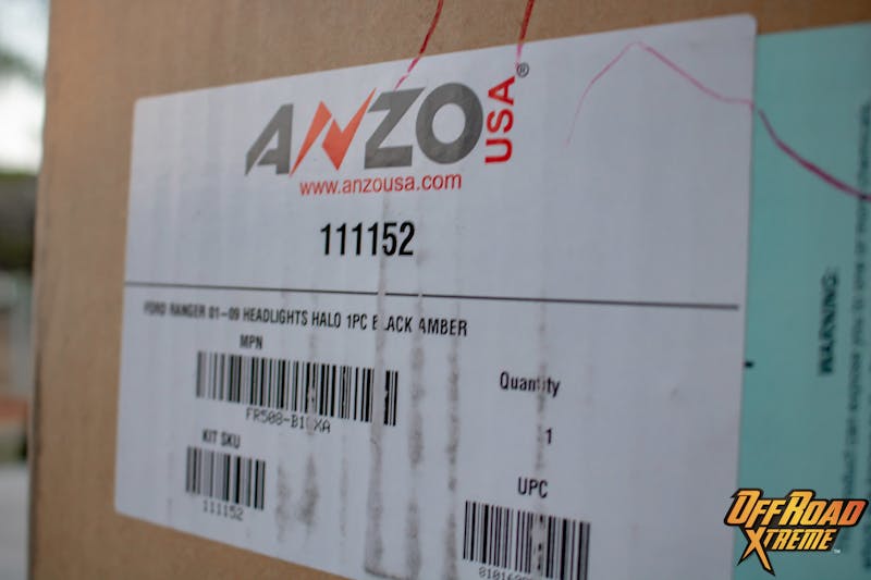 That was the main reason we went to Anzo when it came to addressing some appearance issues on our latest Off Road Xtreme project vehicle. The Ultimate PreRunner Ranger has over 160,000 miles racked up on the odometer with a lot of off-roading mixed in and has seen better days. The OEM headlamp assembly is a dated 2-piece design with the front signals separated from the main light. We went and sourced ANZO USA Halo Headlamps SKU#111152 which not only refreshed our vehicle appearance it also improved the look and performance.